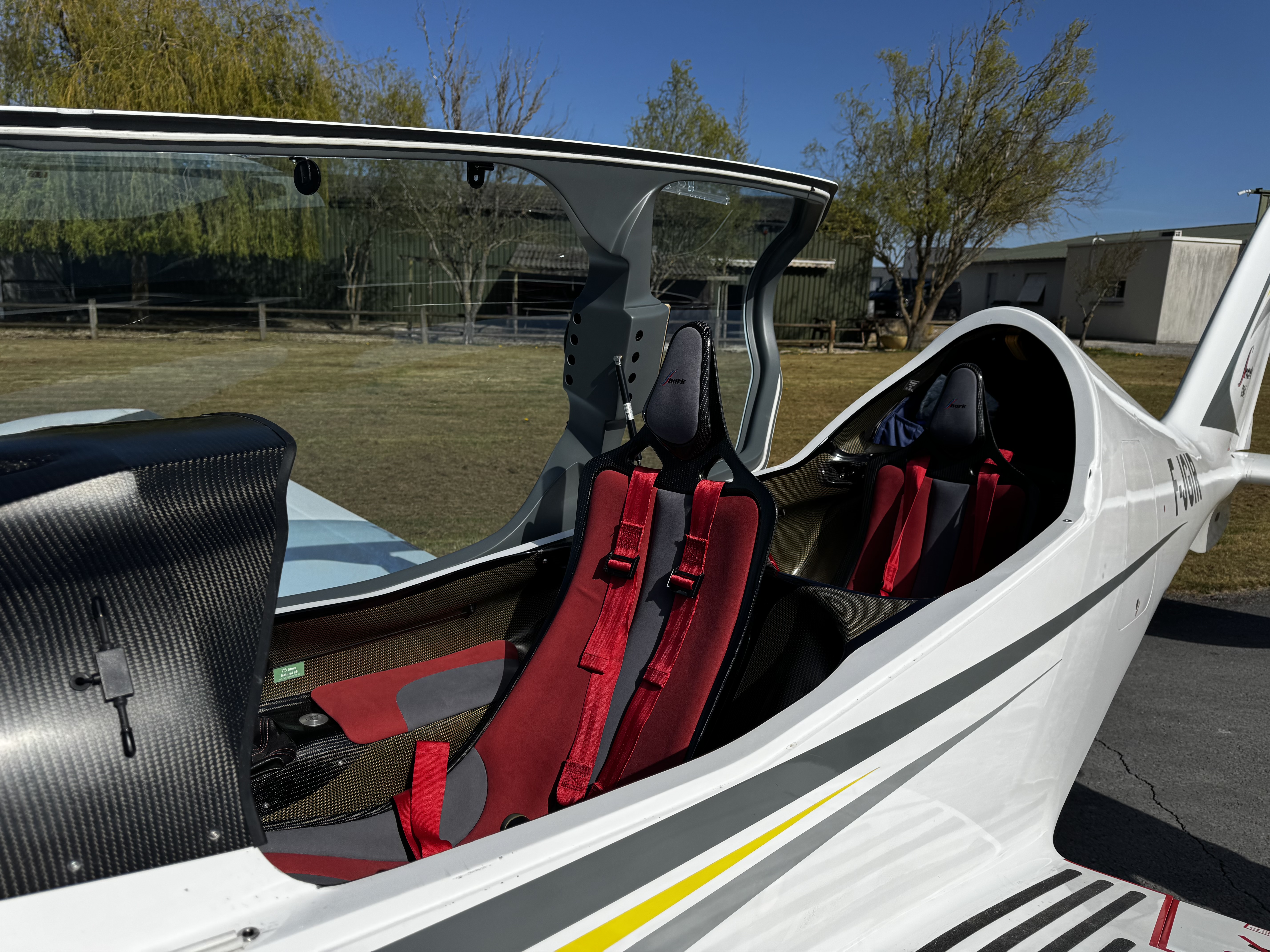 Equipements :Parachute, VHF Trig TY96, ATC Trig TT31, GPS Garmin AERA 760, Instrumentation Flybox avec horizon Flybox Mini Oblo et pilote automatique, volet et trim électrique, prise USB, strobes d’ailes + feux de nav, phare d’atterrissage, fenêtres photos, sièges réglables, réservoirs long rang 130 litres, filet pour coffre à bagages (15kg) barre de manipulation au sol.